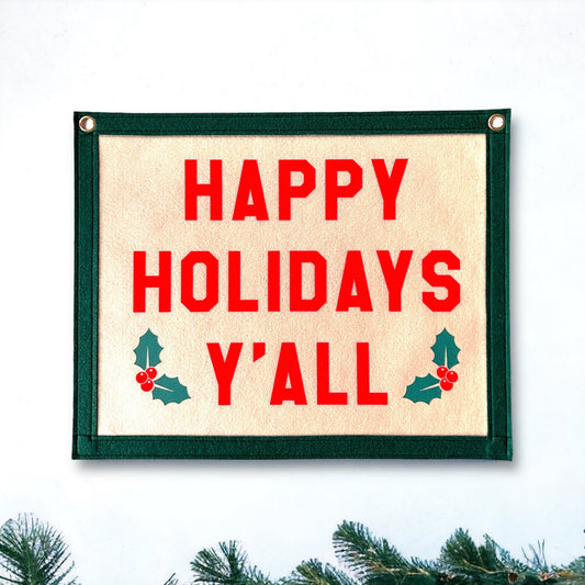 Happy Holidays Y’all Felt Banner | 50cm x 40cm Camp Flag | Pennant | Christmas Decor