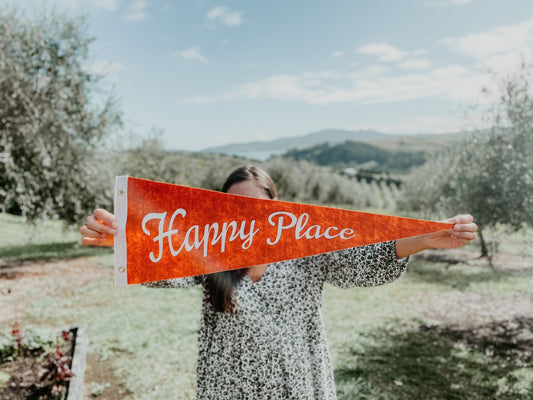 Happy Place Pennant | Felt Pennant Flag Banner | Vintage Style Wall Decor