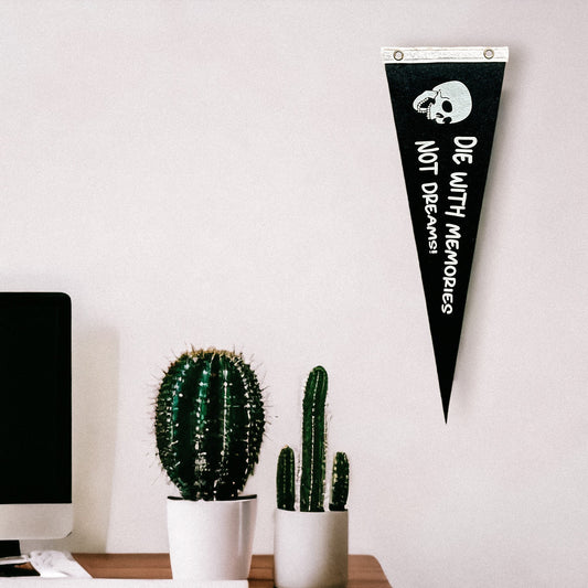 Die with memories not dreams Pennant | Felt Pennant Flag Banner | Vintage Style | Wall Decor