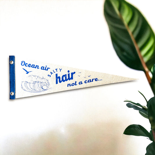 Ocean air Salty hair Not a care Pennant | Travel Felt Pennant Flag Banner | Nautical Vintage Style | Wall Decor