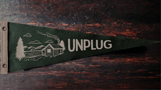 Unplug Pennant | Travel Felt Pennant Flag Banner | Vintage Camping & Hiking Style | Wall Decor