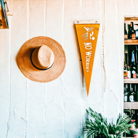 No Worries PennantNew Zealand | Travel Felt Pennant Flag Banner | Vintage Style | Wall Decor
